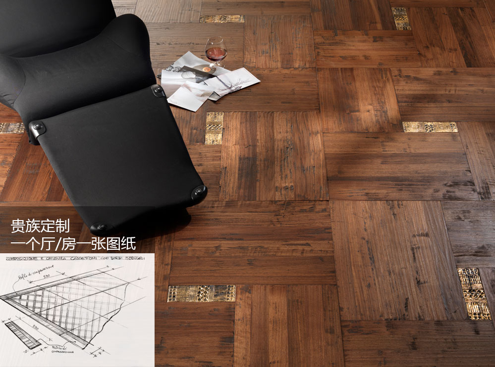 菲列德羅全部由意大利設計師針對上流社會交付的家居裝修平面圖,進行一對一的個性化定制設計、并由工藝精湛的威尼斯工匠,根據該系列圖紙逐片地板手工制作,一個廳/房一張圖紙,一個整托的包裝地板安裝一廳/房,產品制造后直接從意大利進口運送到中國,由專業技工根據意大利圖紙完成鋪裝。整個過程為高級度身定制的一對一服務。