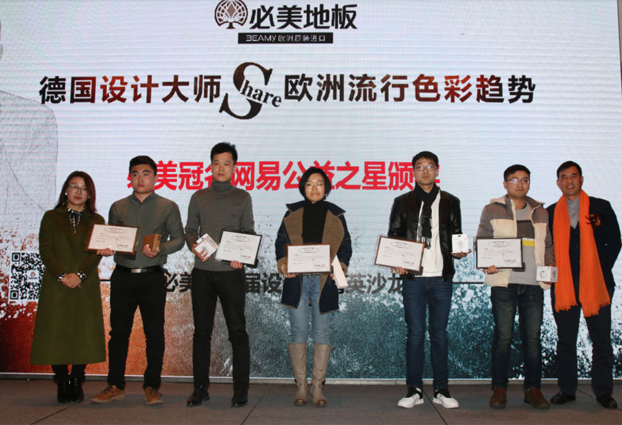 沙龍活動的下半部分,必美還對前段時間為網易家居冠名贊助的“必美星設計O元改新居——必美地板第二屆大型公益戶型設計活動”的優秀設計師進行頒獎活動。其中,王海瀟設計師榮獲設計之星一等獎,包國俊設計師榮獲設計之星二等獎,張明雪設計師、盛世賢設計師、黎銘設計師榮獲設計之星三等獎。