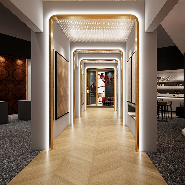 今年必美地板展廳采用全新升級的視覺系統(tǒng),中英文結(jié)合更加凸顯必美歐洲原裝進口品牌的奢華魅力。從內(nèi)到外,從裝置到互動,從光影到氣韻,一條沉浸式的“時光隧道”吸引觀者深入探索必美更深層次的美,勢必會成為設(shè)計周的網(wǎng)紅打卡圣地!