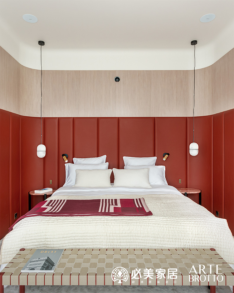 紅色高級皮革與灰色橡木組合的木墻板,起到特別重要的裝飾作用,賦予了這件臥室強烈的個性,從阿特·布魯托的定制家具和裝飾配件中獲取靈感,您也可以設(shè)計您夢想中的房間。