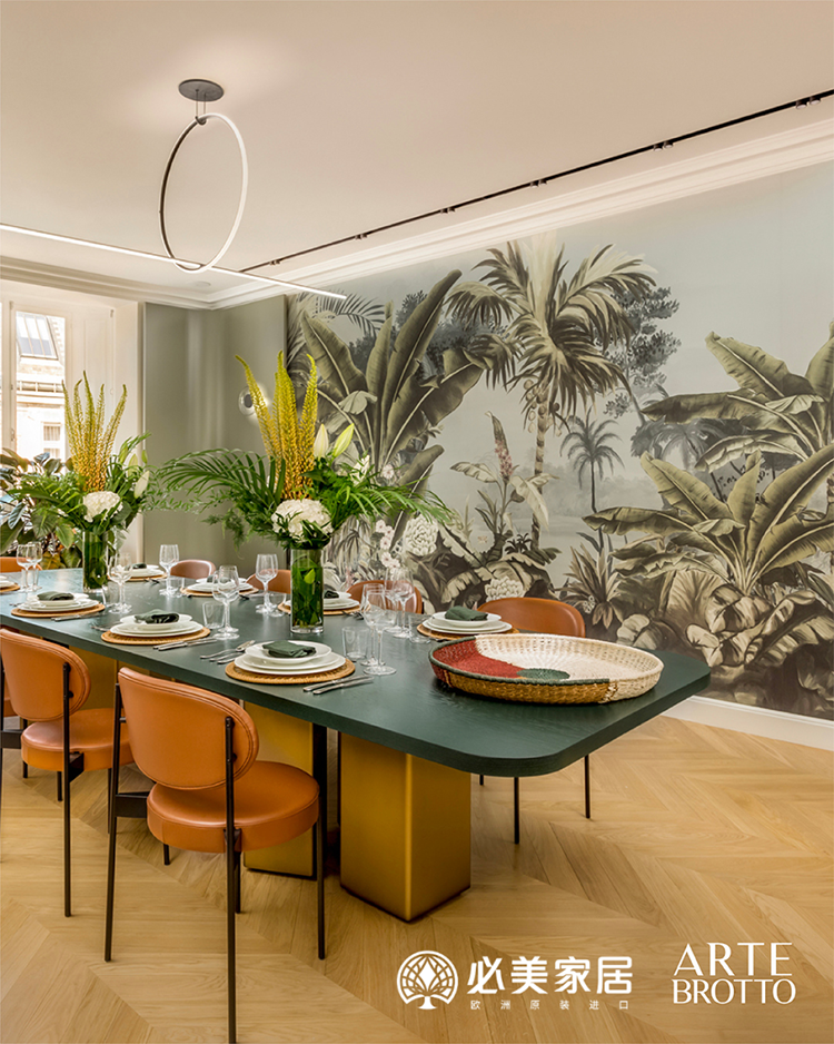 綠意春色,麥穗金秋,充盈著整個畫面,這張由阿特·布魯托為這所巴黎公寓設(shè)計的漆面桌子,是對意大利制造設(shè)計之美的致敬。從精致的金屬鑲嵌到拉絲黃銅桌腿,每一個細節(jié)都充分表達了阿特·布魯托對執(zhí)著使用最優(yōu)質(zhì)原材料的熱情。