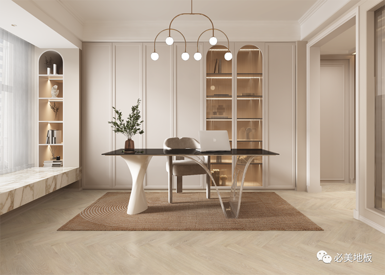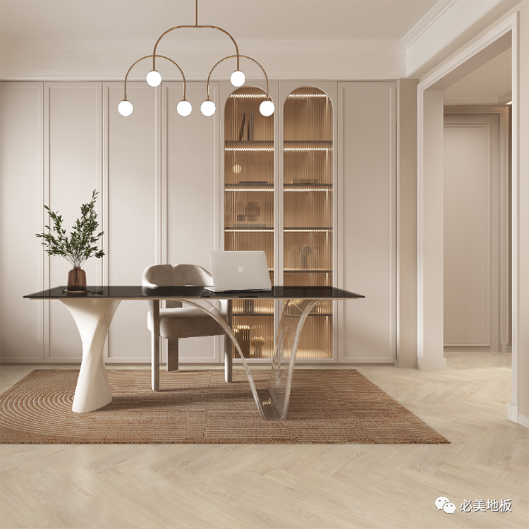 天然橡木人字拼搭配同色系墻漆