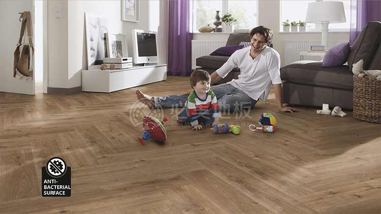 地板自帶抗菌護盾,抗菌率高達≥99.9%,能夠抵御金黃葡萄球菌、大腸桿菌,對有小朋友、老人和愛寵的家庭十分友好,輕松實現健康家居生活。