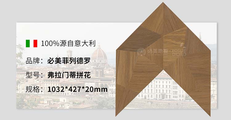 眾可供選擇的飾面,使必美菲列德羅弗拉門蒂拼花能夠被選作適合任何生活風格和室內設計完美選項!木質的天然紋理與拼花的藝術韻律交相輝映,低調中透露出雋永的奢華,特的幾何拼花圖案和溫潤如玉的觸感,為空間注入了一份靈動與雅致,完美詮釋了現代輕奢“于細節處見真章”的哲學!