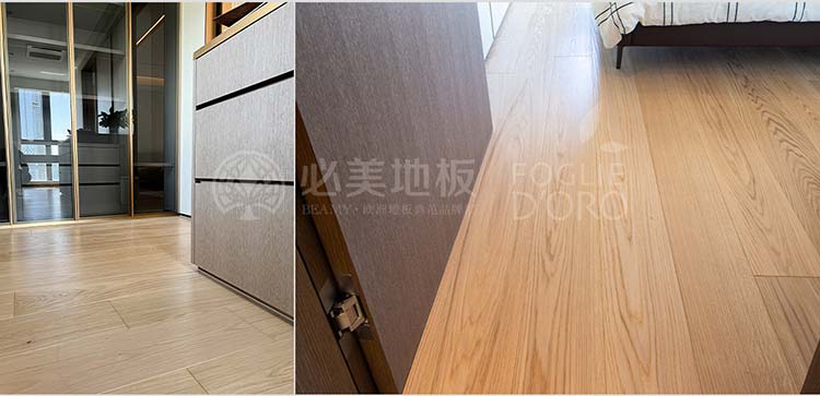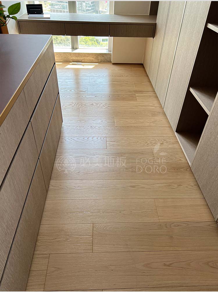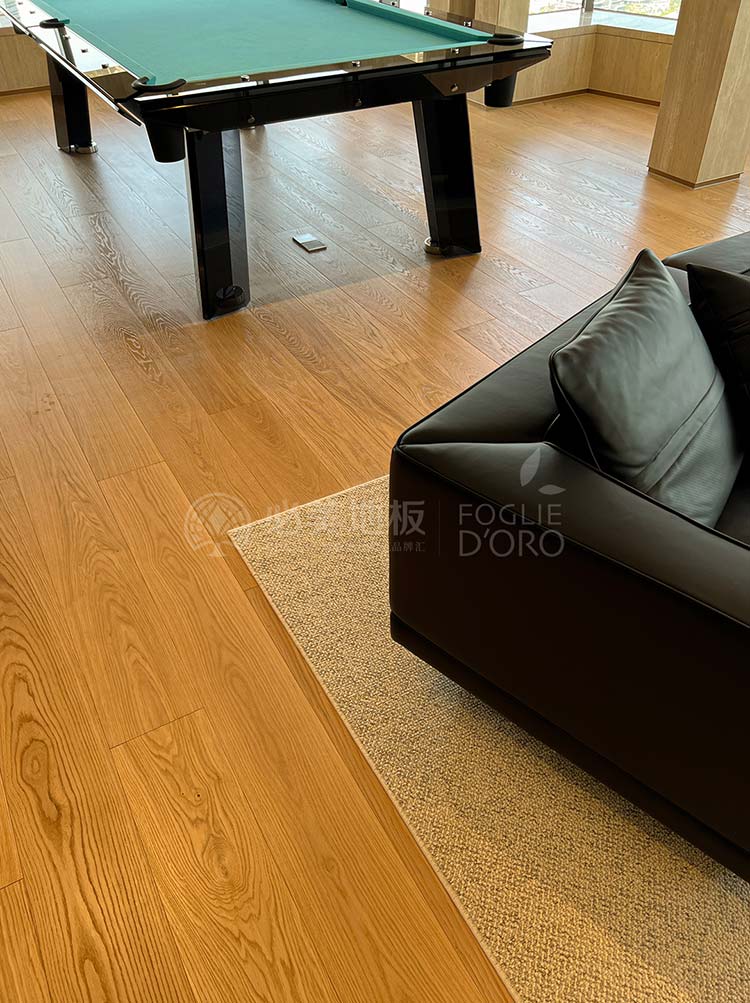 這款地板以其筆直流暢的線條和均勻細膩的紋理,帶來視覺上的延伸感與寧靜感。木色與公共區域形成了巧妙的呼應,卻在細節處展現出不同的個性,既保證了整體風格的協調統一,又賦予了每個空間獨有的靈魂。當清晨的第一縷陽光穿透窗簾,溫潤的木地板在腳下蘇醒,為新的一天帶來自然與溫暖的問候。