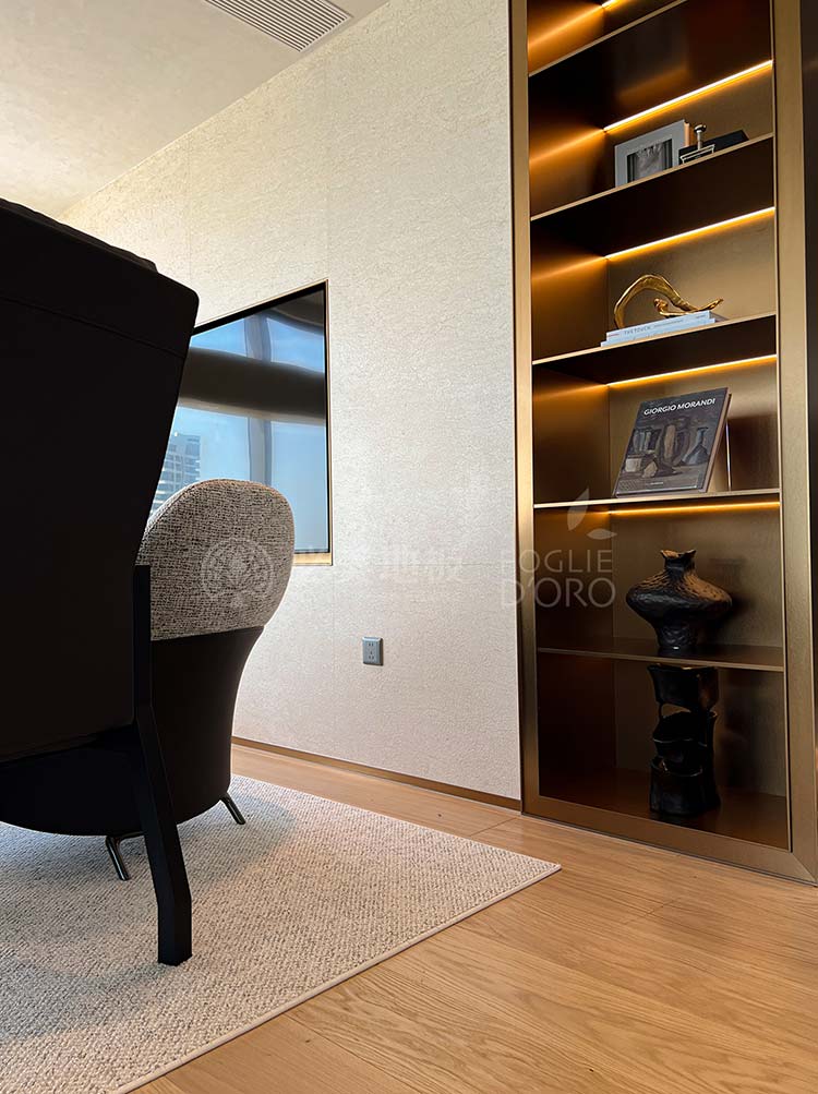 移步至專屬主人的靜謐天地——私人茶室。這里,是遠離喧囂、回歸內心的精神角落。為了營造這份難得的沉靜與溫潤,我們選用了奧地利必美史迪萊克SCHEUCHER的碧昂佳橡木地板。
